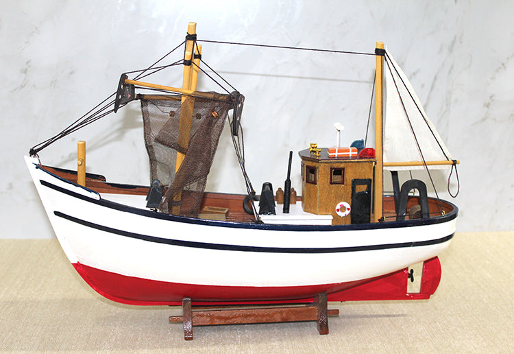 Ahşap Balıkçı Takası, geleneksel balıkçı teknelerinin zarif bir minyatürüdür. 45x40 cm boyutunda olan bu model, dayanıklı ahşap malzemeden üretilmiştir ve ince detaylarıyla gerçekçi bir görünüm sunar. Tekne, denizcilik tutkunları ve koleksiyoncular için mükemmel bir dekorasyon parçasıdır. Ahşap malzeme, teknede kullanılan ipler ve diğer küçük detaylar, bu modeli göz alıcı ve özgün kılar. Estetik açıdan şık olduğu kadar, denizcilik tarihi ile ilgili bir hediye veya dekorasyon arayanlar için idealdir.