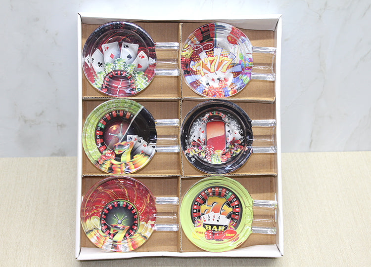 Cam Puro Küllük Model 3, şans oyunları temalı renkli baskı tasarımıyla şık bir görünüm sunar. Dayanıklı cam malzemeden üretilmiştir, uzun ömürlüdür ve puro severler için fonksiyonel bir dekoratif objedir. Şans oyunları motifleriyle süslenmiş bu küllük, estetik bir dokunuş ekler ve her türlü masa veya sehpa için mükemmeldir.
