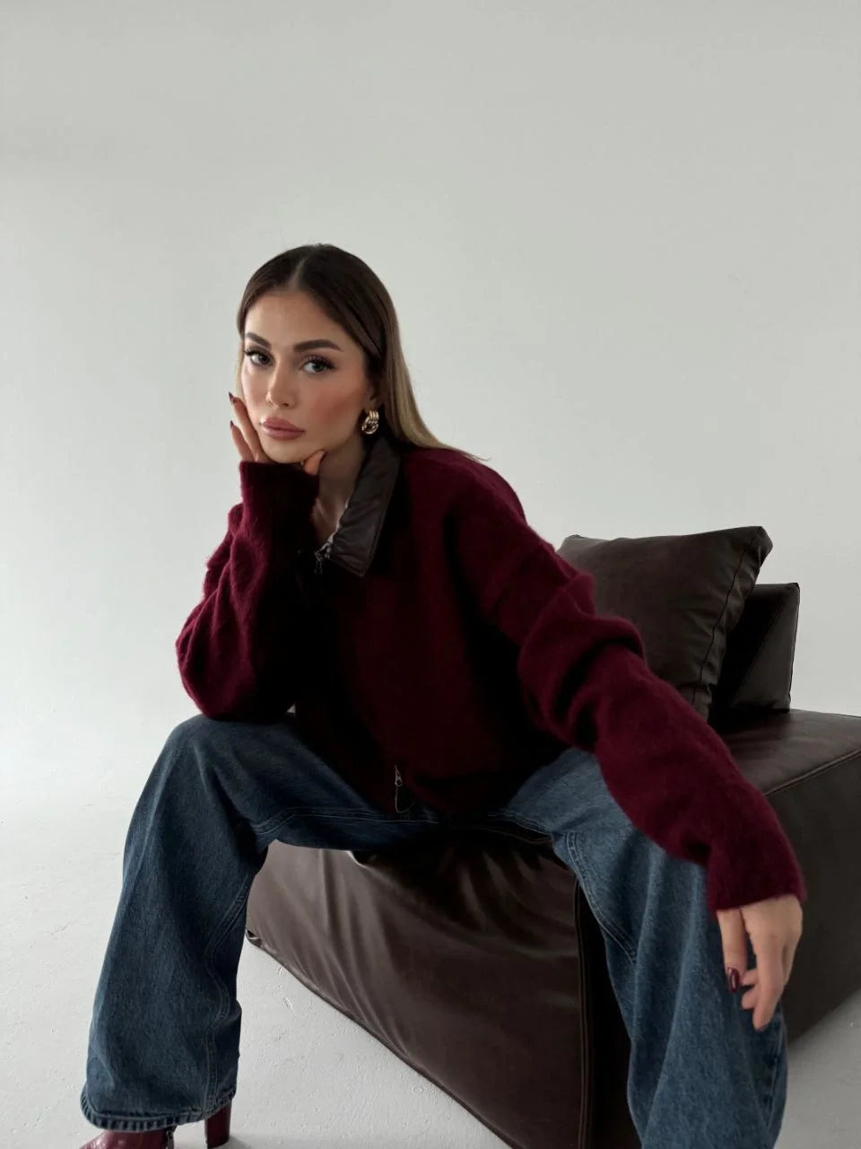 Deri Yakalı Pamuk dokulu Çift Taraflı Çalışan Fermuar Ceket - Füme