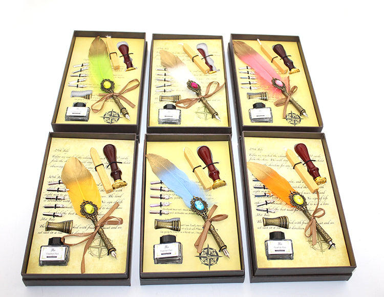 DIVIT HOKKA SETİ MODEL 8Ürün ÖzellikleriDivit Hokka Seti Model 8, renkli tüy ve taş detaylı tasarımıyla hem dekoratif hem de işlevsel bir yazı setidir. Tüy divit, göz alıcı renkli tasarımı ve zarif taş süslemeleriyle yazı yazmayı keyifli bir hale getirirken, hokka, mürekkebinizi şık ve düzenli bir şekilde saklamanızı sağlar. Klasik ve zarif tasarımı, seti hem koleksiyoncular hem de geleneksel yazı sanatlarına meraklı olanlar için ideal bir seçenek haline getirir. Masa üstünde şık bir aksesuar olarak da kullanılabilir.Not: Ürün farklı renklerde mevcuttur ve stok durumuna göre karışık gönderim yapılmaktadır.Paket İçeriği1 adet Divit Hokka Seti Model 8