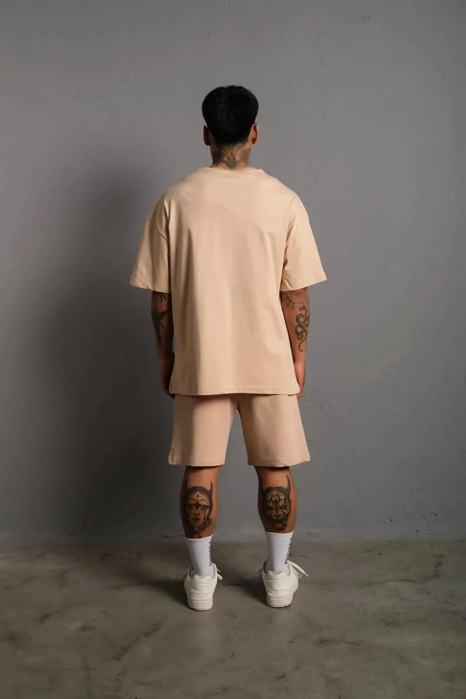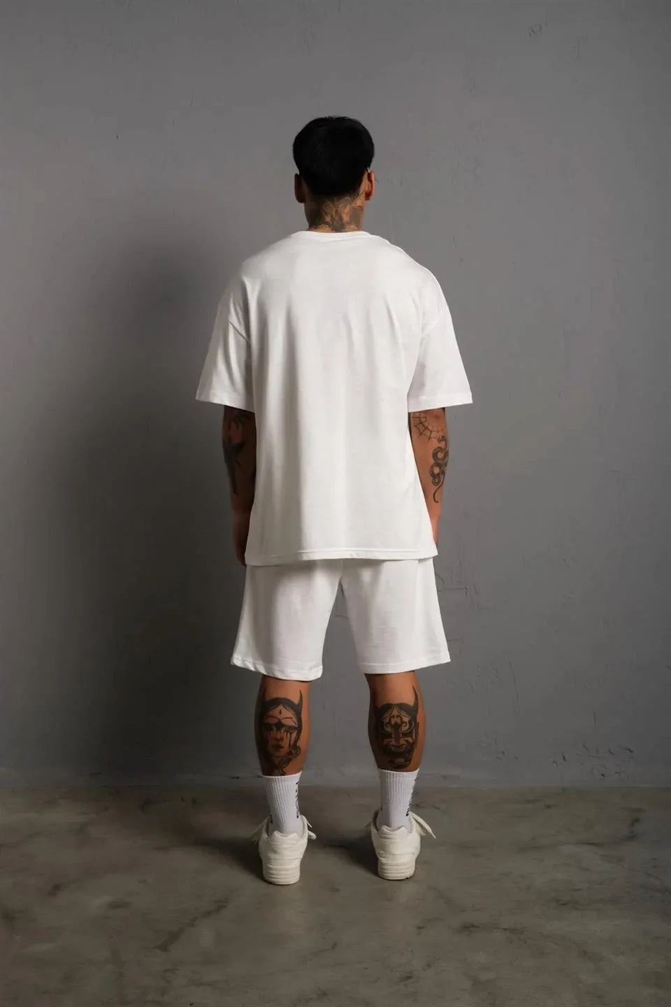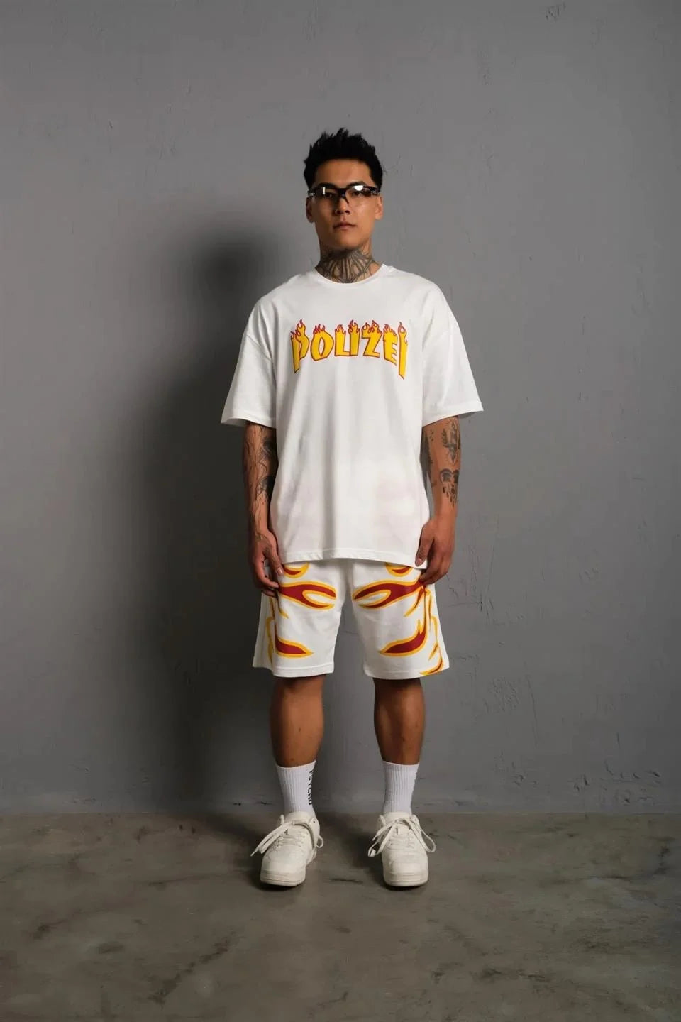 Erkek Alev Baskılı İkili Şortlu Takım - Beyaz
