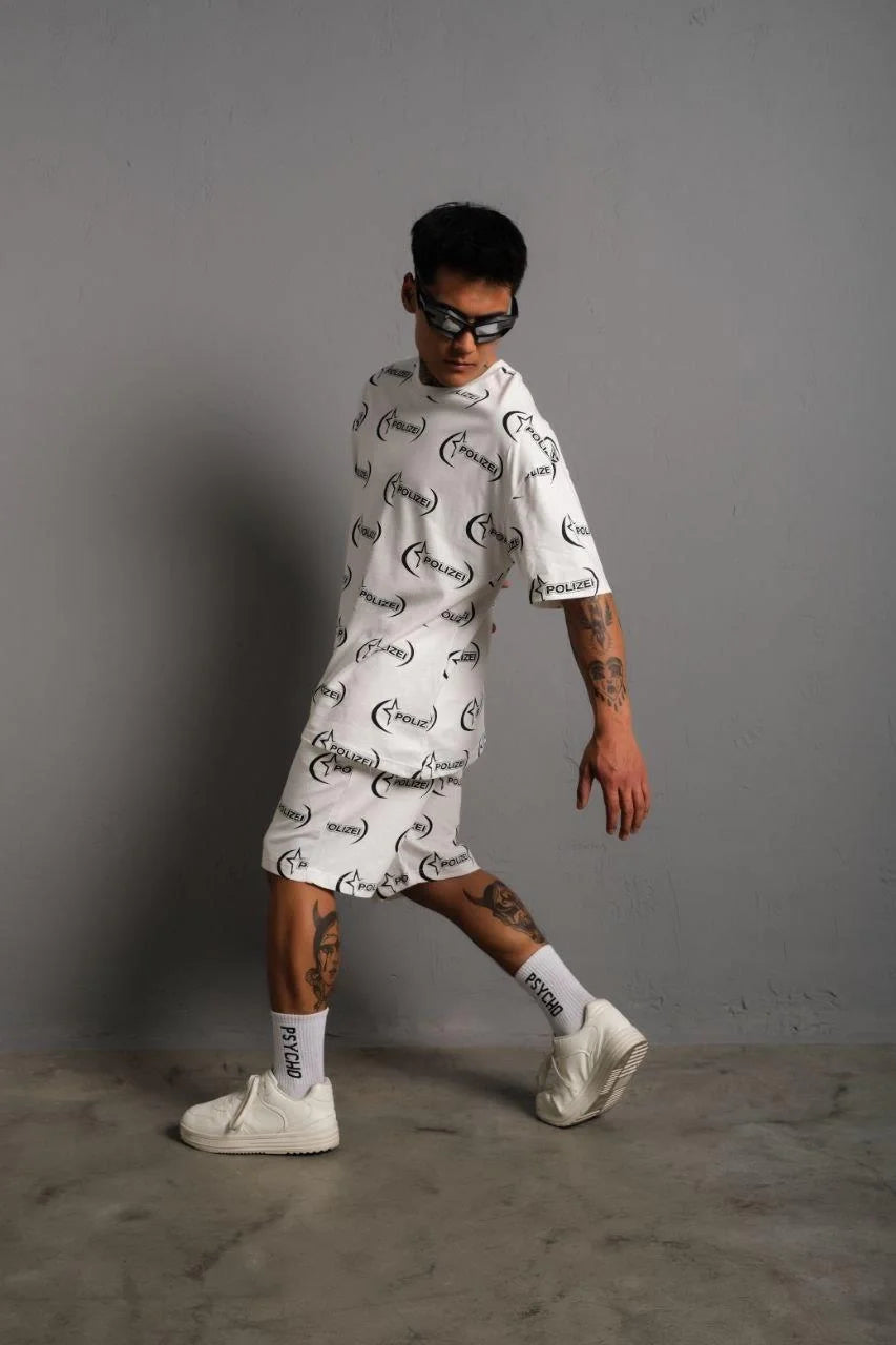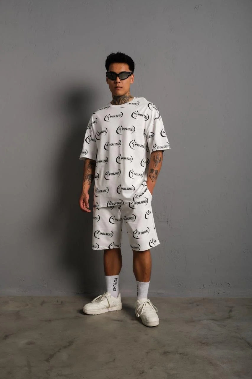Erkek Baskılı İkili Şortlu Takım - Beyaz