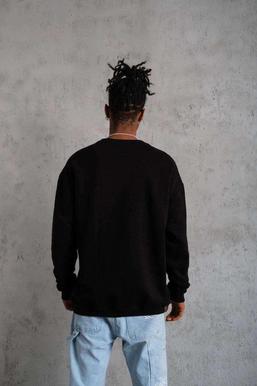 Erkek Düz Bisiklet Yaka Sweat - Siyah