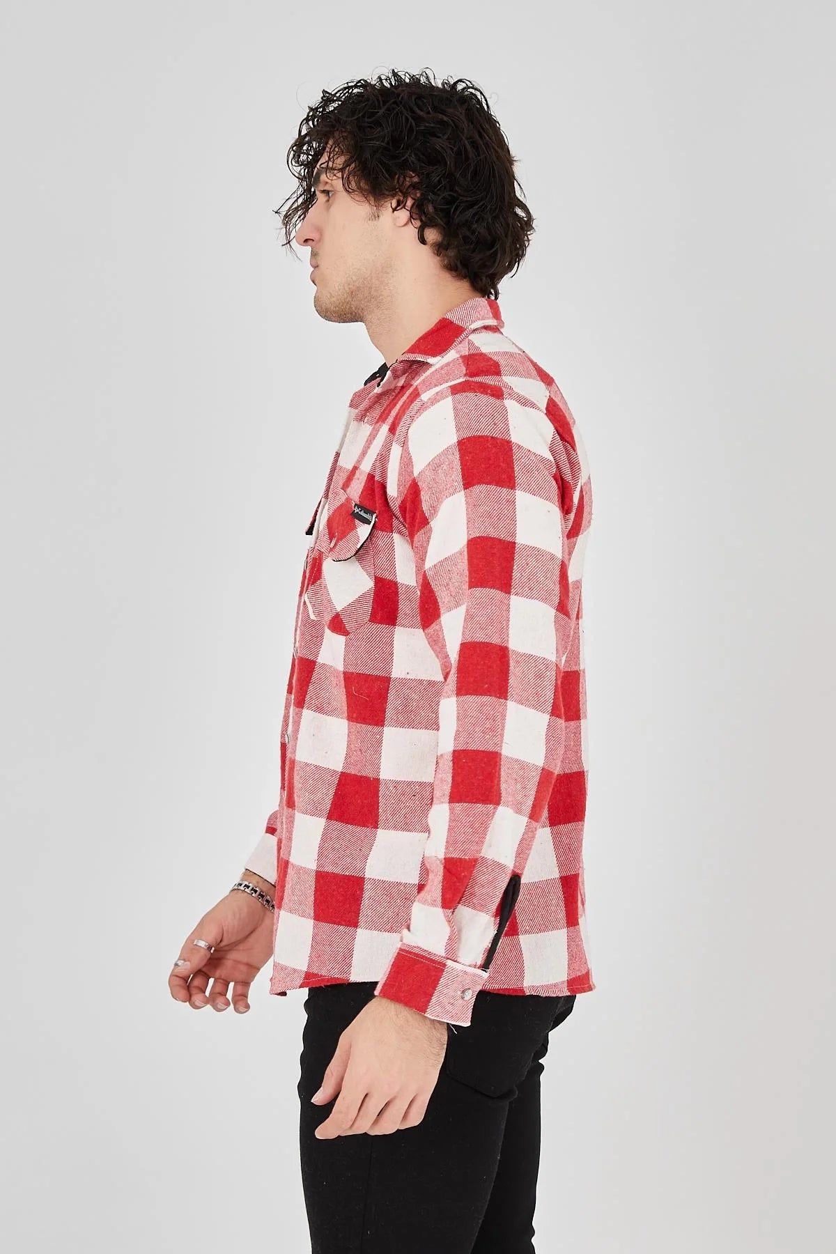 Erkek Oduncu Gömlek – Uzun Kollu, Şardonlu Kumaş, Kareli Desen, Regular Fit, Manşetli, Çift Cepli, Rahat Günlük Bahar & Kış Stil - Pembe