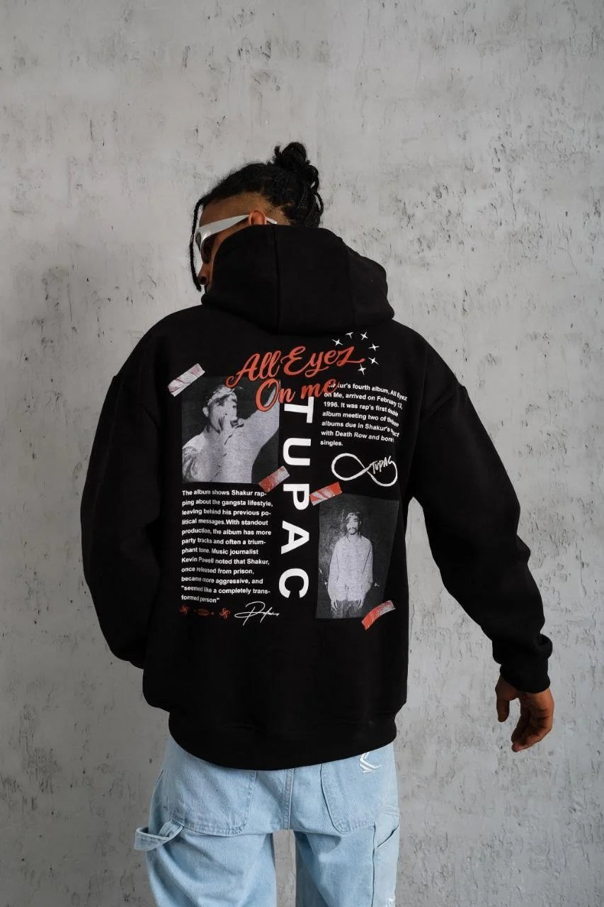 Erkek Ön Arka Baskılı Kapşonlu Sweat - Siyah