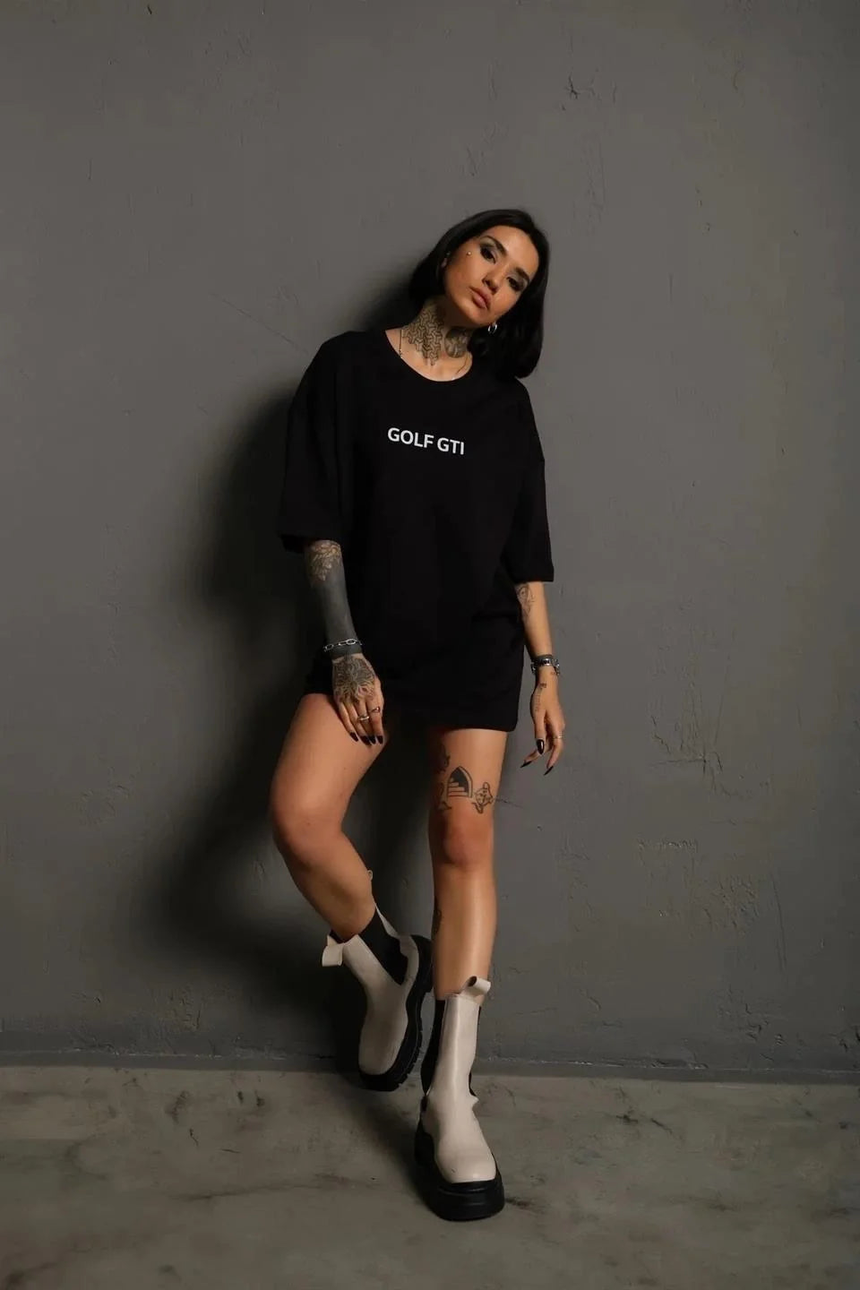 Erkek Oversize Baskılı Tişört – Golf GTI Retro Araba Desenli, Ön & Arka Dijital Baskı, Sokak Modası Stil - Gri