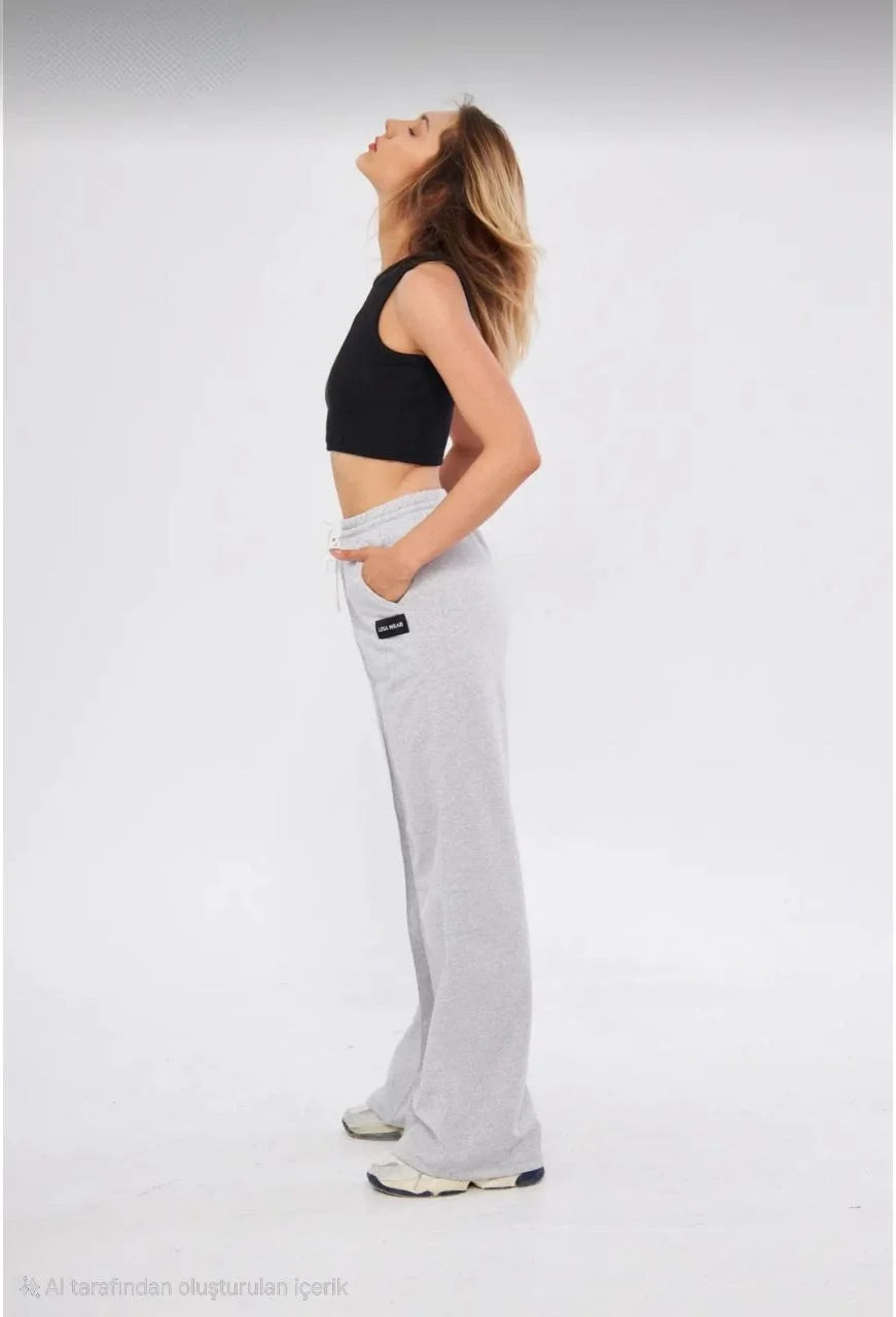 İki iplik Bol Paça Eşofman Pantalon - Siyah
