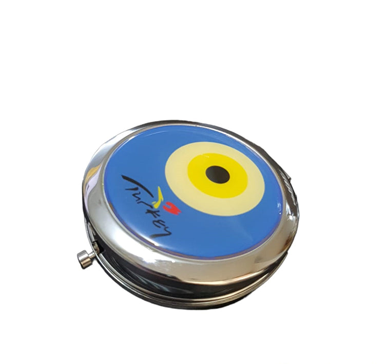 NAZAR BONCUKLU EL AYNASI Ürün ÖzellikleriNazar boncuklu el aynası, kompakt ve taşınabilir tasarımı ile her an yanınızda taşıyabileceğiniz şık bir aksesuardır. Geleneksel nazar boncuğu deseni, hem dekoratif hem de koruyucu bir simge olarak kullanılır. Yüksek kaliteli malzeme ile üretilmiş olan bu ayna, dayanıklı ve estetik bir tasarıma sahiptir. Hafif yapısı, rahatça taşınmasını sağlar ve her çantada veya cebinizde kolayca yer bulur. Kompakt boyut, pratik kullanım ve göz alıcı tasarımı, bu aynayı hem işlevsel hem de dekoratif bir parça yapar.Paket İçeriği1 adet Nazar Boncuklu El Aynası