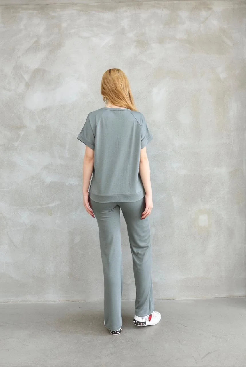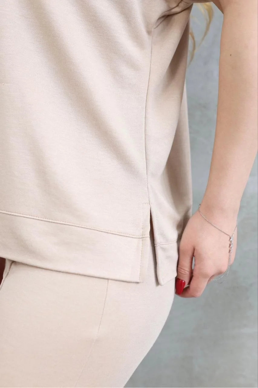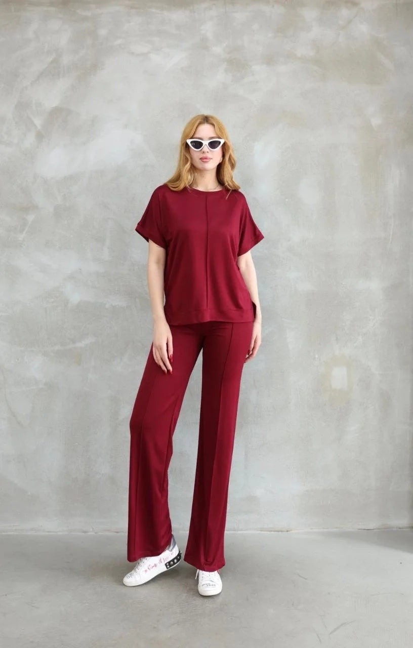 Osy Modal Yumuşak dokulu Kumaş Bisiklet Yaka Kısa Kollu Takım - Bordo
