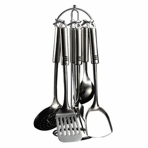 PASLANMAZ ÇELİK MUTFAK SETİPaslanmaz çelikten üretilen bu mutfak seti, dayanıklılık ve şıklığı bir araya getirerek mutfakta çeşitli işlemleri kolaylaştırır. Set, beş ana parçadan oluşur:Paslanmaz Stand: Fonksiyonel ve sağlam bir temel sunarak diğer mutfak araçlarını düzenli bir şekilde saklar. Mutfak tezgahınızda düzeni sağlamak için idealdir.Kepçeler (2 Parça): İki farklı boyutta tasarlanmış kepçeler, yemek pişirme veya servis yapma işlemlerinizde size esneklik sunar. Paslanmaz çelik malzeme, dayanıklılık ve hijyen sağlar.Spatula: Geniş ve düz yapısı ile kızartma, döndürme veya karıştırma işlemlerinde kullanılabilir. Paslanmaz çelik yapısı, uzun ömürlü ve güvenilir bir kullanım sunar.Kevgir: Pratik bir kullanım sunan kevgir, çorba, makarna veya diğer yemekleri süzmek için idealdir. Paslanmaz çelik malzeme, temizliği kolaylaştırır.Bu paslanmaz çelik mutfak seti, mutfakta çeşitli görevler için gereken temel araçları bir araya getirerek kullanıcıya pratiklik ve dayanıklılık sağlar.Paket İçeriği1 adet paslanmaz çelik mutfak seti