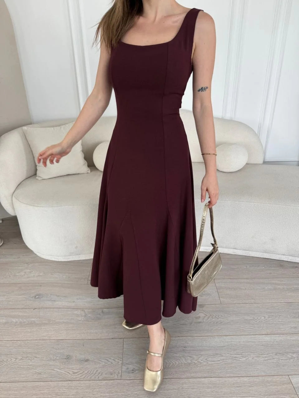 Sırt Dekolteli Kolsuz Uzun Elbise - Siyah