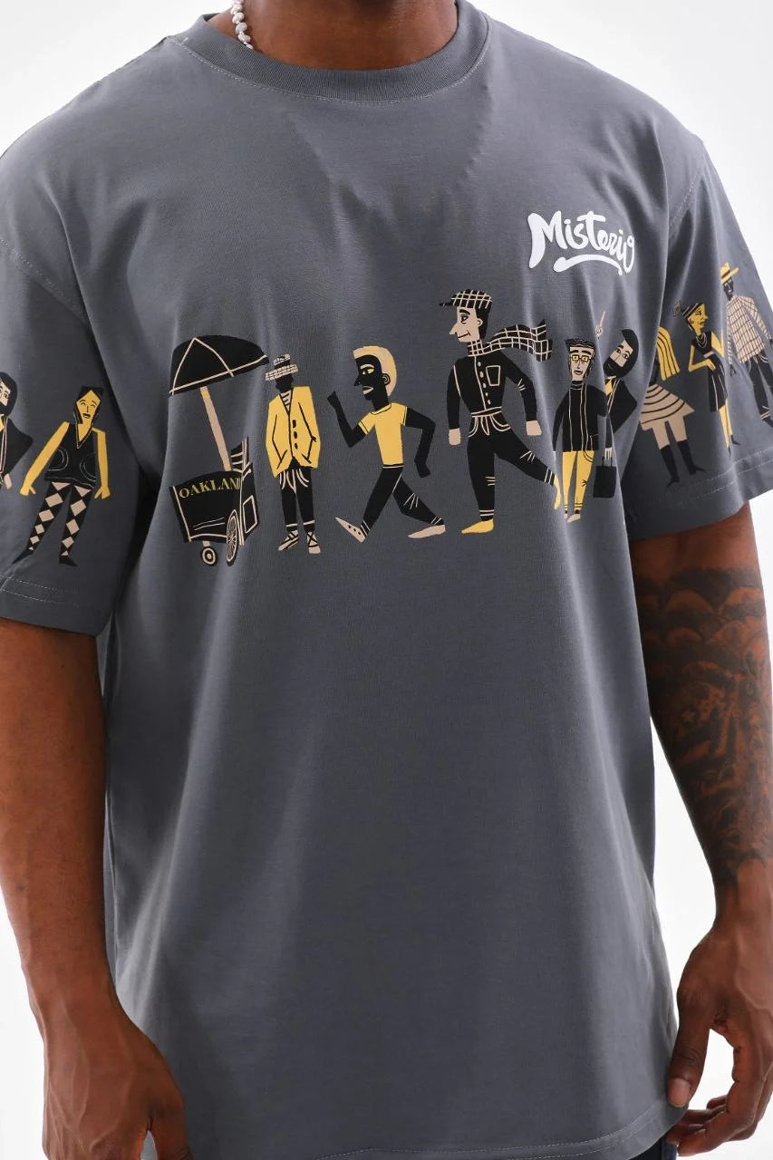 Unisex Bisiklet Yaka Baskılı Oversize T-Shirt - Beyaz