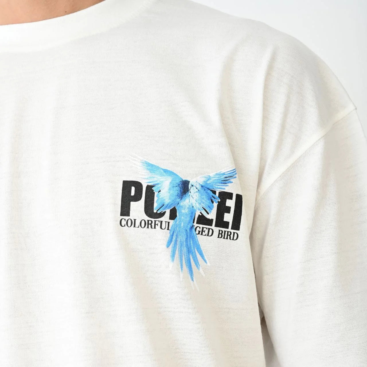 Unisex Bisiklet Yaka Baskılı Oversize T-Shirt - Beyaz