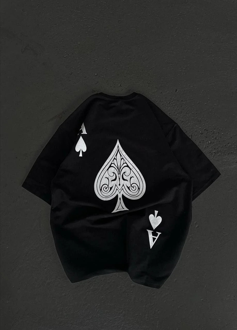 Unisex Bisiklet Yaka Baskılı Oversize T-Shirt - Siyah