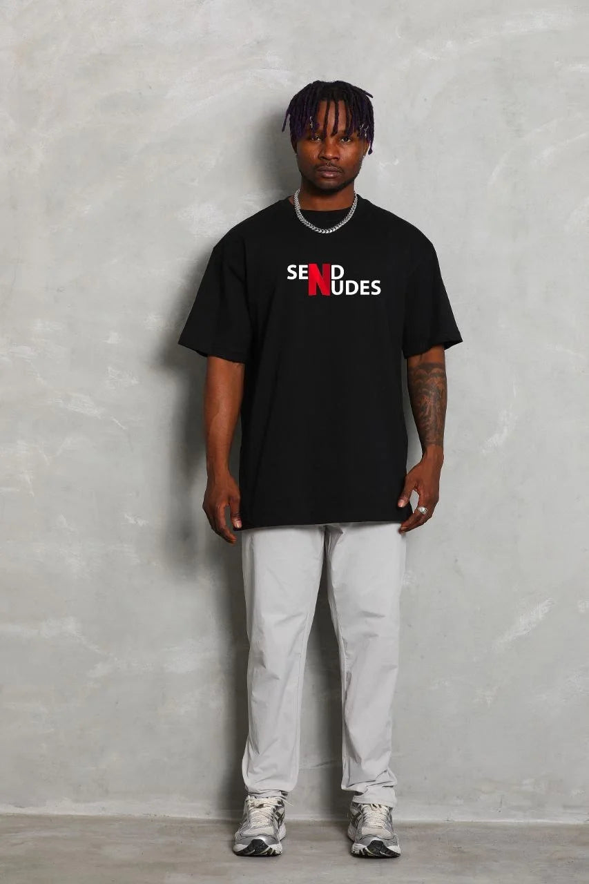 Unisex Bisiklet Yaka Double Oversize Baskılı T-Shirt - Siyah