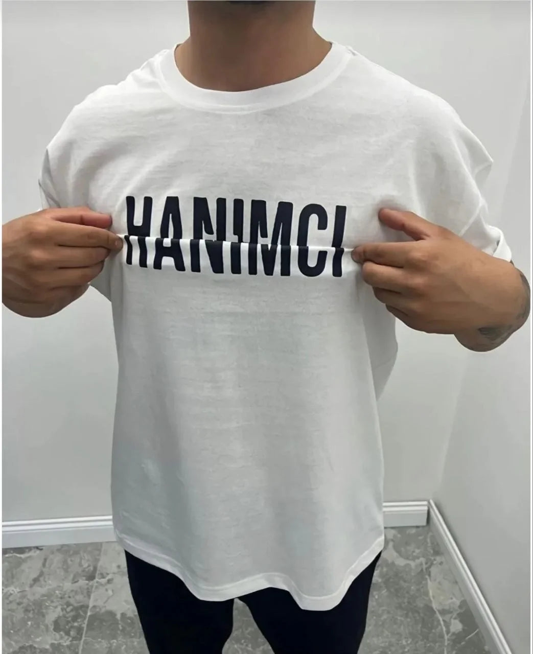 Unisex Bisiklet Yaka Katlanan Baskılı T-Shirt - Siyah