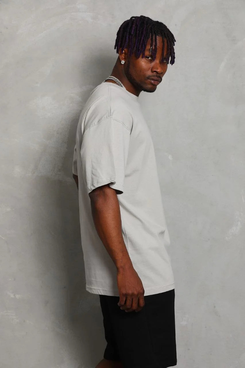 Unisex Oversize Düz Bisiklet Yaka T-Shirt - Beyaz